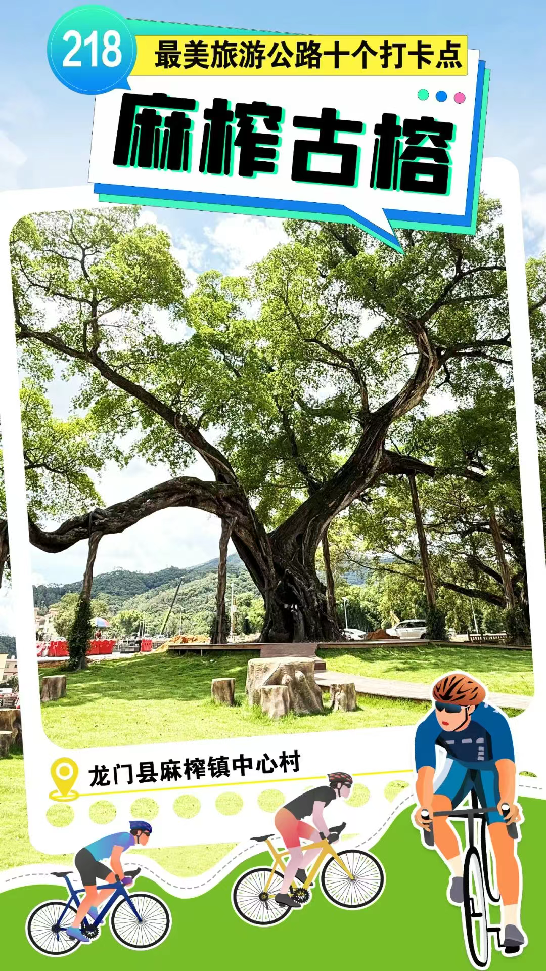 龙门麻榨镇,北宋千年古榕擎天如盖(高13米,冠幅30米),苍劲虬枝细诉岁月。最美旅游公路旁,焕新民居伴驿站。榕荫下啜茶休憩,触摸岭南“树王”的厚重生机,时光在此悠然流淌。